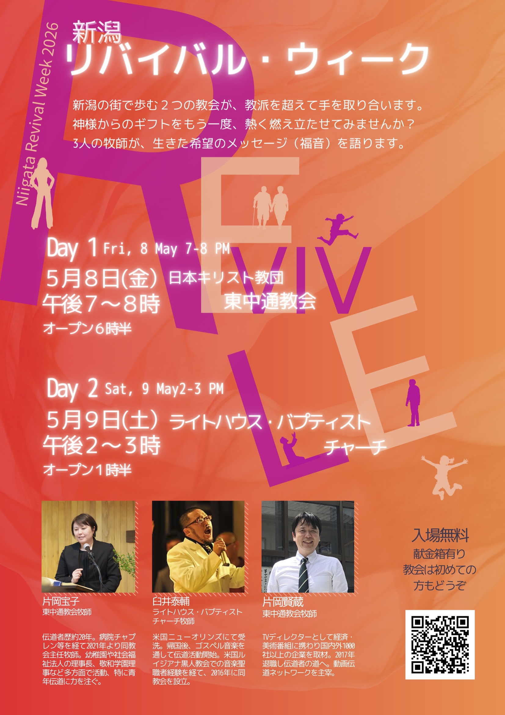 新潟リバイバル・ウィークのお知らせ 5月8日(金)午後7時〜8時、5月9日(土)午後2時〜3時